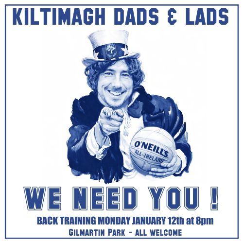 The Kiltimagh Dads and Lads are back for 2026, with training every Wednesday in Gilmartin Park @ 8 pm. Why not join the crack using the following WhatsApp link: https://chat.whatsapp.com/IAxnOwilxJOIVtvQkO0Oxp