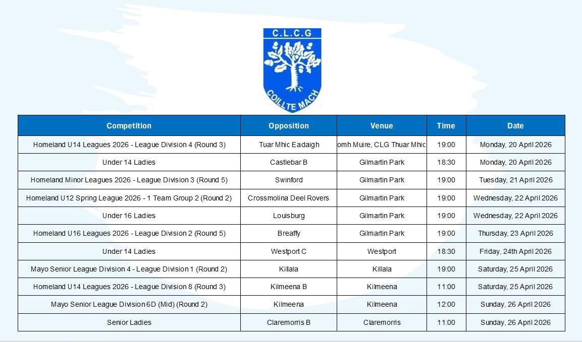 Tá CLG Coillte Mach ag cur ceithre (4) scoláireacht chuig Coláiste Samhraidh sa Ghaeltacht ar fáil an samhraidh seo. Caithfear bheith i do bhall den chluib le cur isteach ar an scoláireacht. Má tá suim agat cuir teacs chuig 087 9885165 roimh 5.00 pm ar an gCéadaoin, 15 Aibreáin.