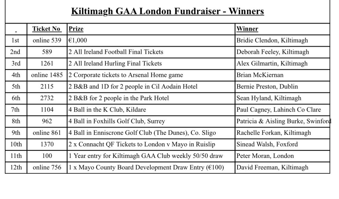 Kiltimagh GAA were delighted to launch their Monster Raffle and Big Night Out in London.